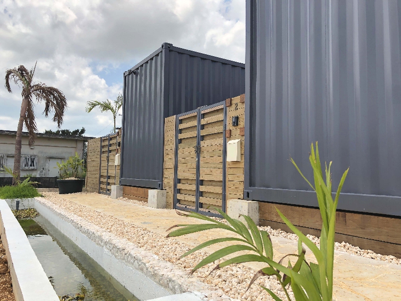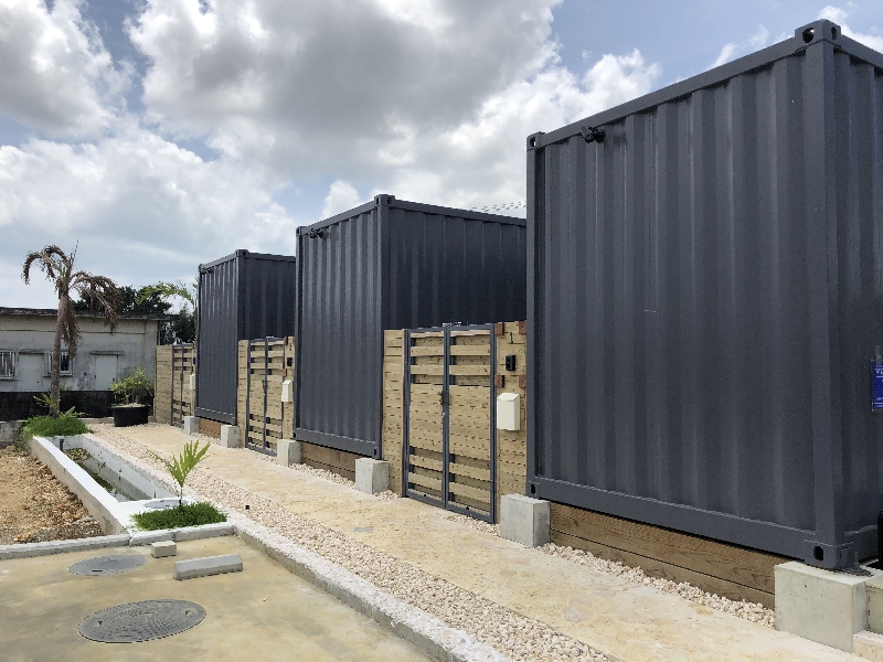 離島での施工性、工期を考慮して工場生産したコンテナユニットを現地にて組み上げました。
