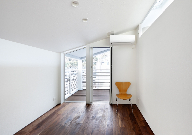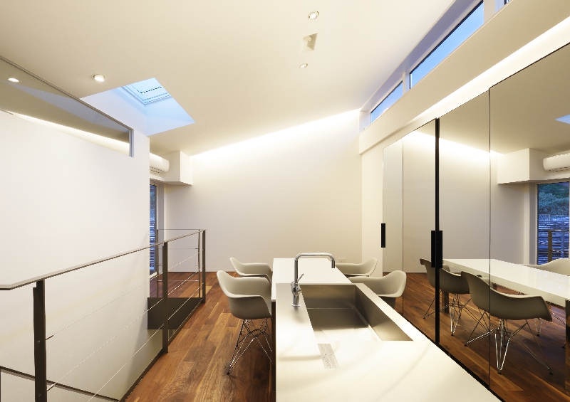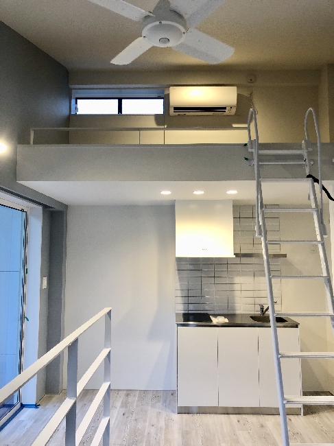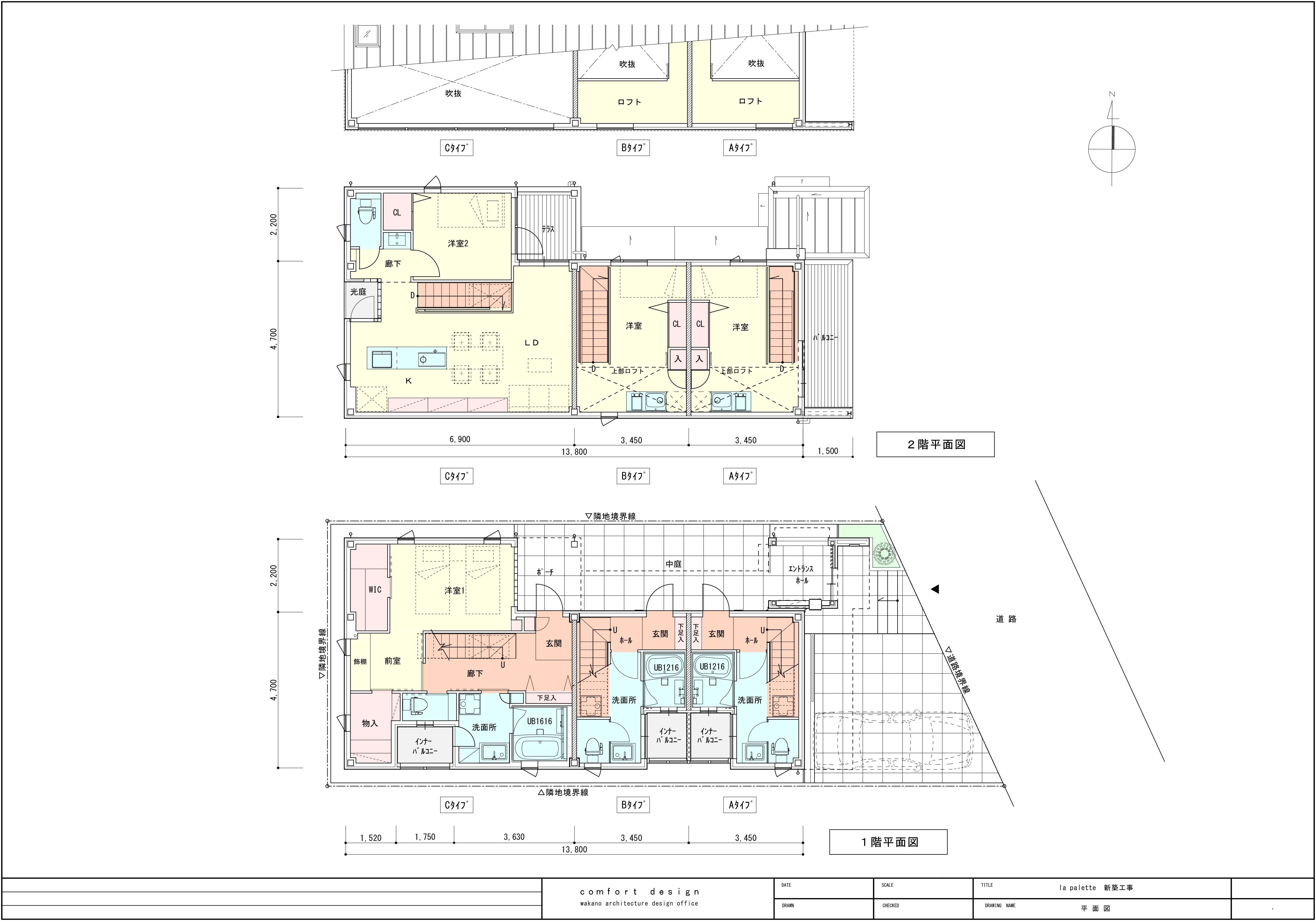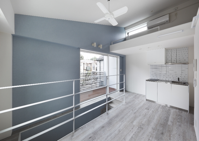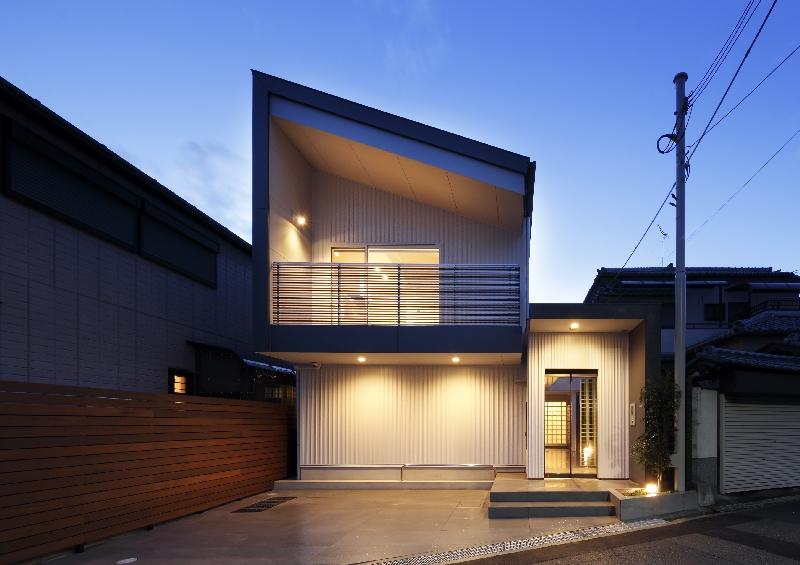 賃貸併用住宅 大阪大学の敷地に隣接した、閑静な住宅街にある、賃貸併用住宅です。 中庭を通り各住戸に入ります。 集合住宅でありながら、戸建ての雰囲気を大切に設計した建物です。 各住戸はメゾネット仕様になっており、賃貸部はロフトを設け開放感 ある部屋としました。